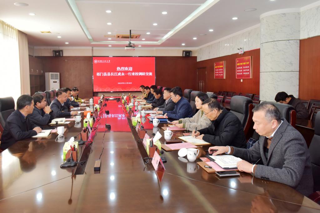 11月18日上午,祁门县委副书记、县长江成永一行来校调研交流。校党委书记陆林,校党委常委、副校长张世宏出席座谈会。祁门县副县长、我校挂职干部杨哲,祁门县科技商务工业信息化局、教育局、农业农村局、团县委以及我校学生工作部、团委、科研处、电气与信息工程学院、公共管...