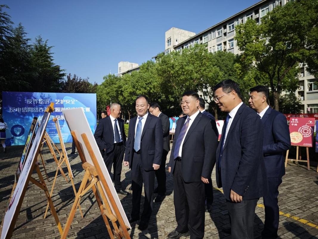 10月22日上午,“反诈‘绘’语,艺护安全”——反电信网络诈骗主题海报设计大赛优秀作品展在秀山校区田径场开展。校领导陆林、曾杰、王俊、郑啸、吴春雷、闵凡飞、郑利平、张世宏,党办校办、党委组织部、党委宣传部、学生工作部、研究生工作部、安全保卫部、艺术与设计学院等...