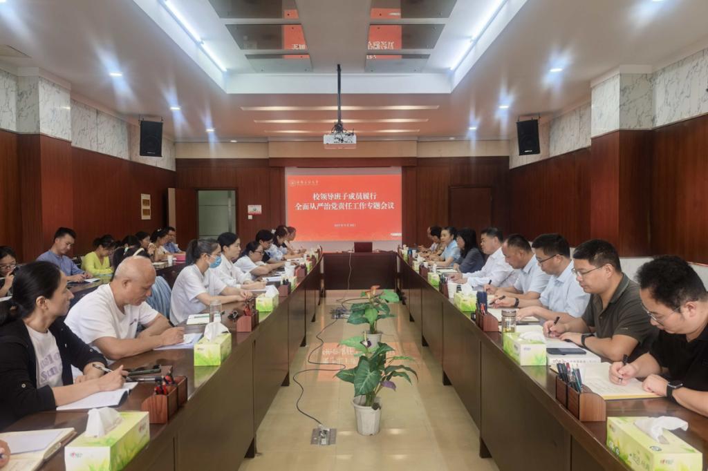 为深入贯彻落实党中央关于全面从严治党战略部署,进一步压紧压实管党治党政治责任,近日,全体校领导分别主持召开分管部门和联系单位的全面从严治党专题会议,深入学习党的二十届四中全会精神、《习近平谈治国理政》第五卷有关重要篇目等,研究部署全面从严治党有关工作。校党...