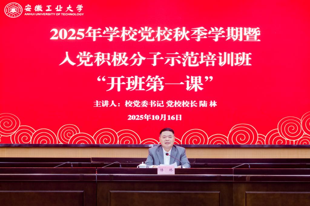 10月16日下午,校党委书记、党校校长陆林以《持续发扬自我革命精神 以坚强党性过硬作风践行初心使命》为题,从初心使命彰显党性和人民性的高度统一,深刻把握作风问题本质上是党性问题的丰富内涵,推进自我革命必须固本培元、增强党性,坚守党校初心用心为党育才等方面,讲授2025年学校党校秋季学期暨入党积极分子示范培训班“开班第一课”。入党积极分子示范培训班全体参训学员,发展对象、预备党员代表,各分党校班主任,各学院基层党支部书记代表,年轻干部代表参加培训。