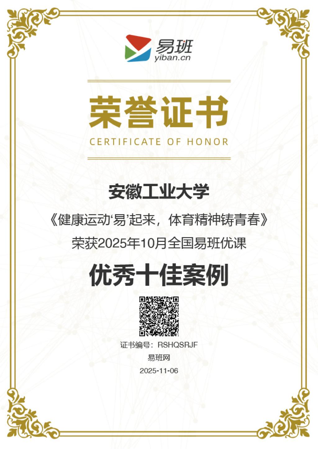 在2025年10月全国易班优课优秀十佳案例评选活动中,我校《健康运动“易”起来,体育精神铸青春》成功入选。该活动采用线上线下联动模式,线上围绕“学、享、考”三个维度帮助学生理解体育精神与个人成长、社会发展的关系,线下组织多样化运动打卡活动,深化学生对拼搏与协作精神的体悟。