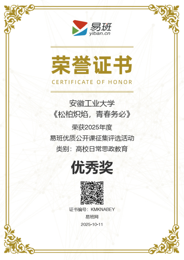 在“2025年度易班优质公开课征集评选活动”中,管理科学与工程学院作品《松柏炽焰 青春务必》荣获高校日常思政教育类别优秀奖(全国共评选20部)。该作品由讲述人走进中国共产党纪律建设历史陈列馆,以场景讲述与历史回顾相结合的方式,生动再现党的纪律建设历程。赵玉婷、焦朋庆老师获评“优秀指导教师”。