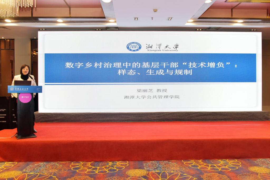 在主题报告环节,全国公共管理专业硕士学位教育指导委员会委员、上海交通大学国际与公共事务学院副院长刘帮成教授,全国公共管理专业硕士学位教育指导委员会委员、南京大学政府管理学院李鹏教授,湖南省行政管理学会副会长、湘潭大学梁丽芝教授,安徽日报理论部副主任、编审程铁军分别作了《数智时代中国公共管理知识创造的机遇与挑战》《数字政府的技术制度双向调试治理》《数字乡村治理中的基层干部“技术增负”:样态、生成与规制》《报纸理论文章写作要领》的专题报告。