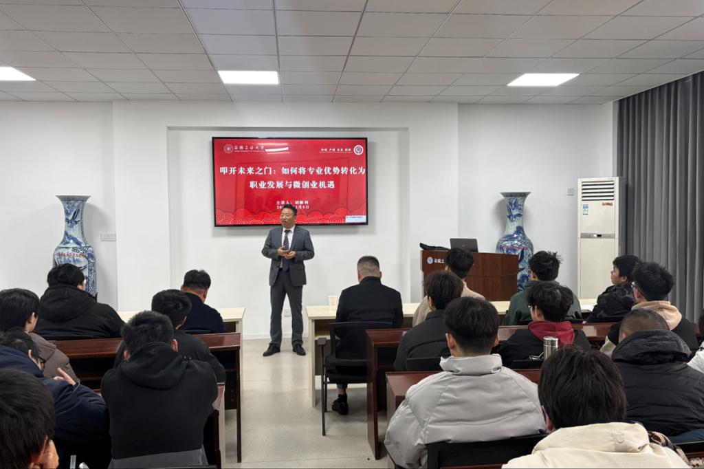 分享交流环节,胡顺利作了“叩开未来之门:如何将专业优势转化为职业发展与微创业机遇”主题报告,勉励同学们以长远眼光规划职业路径,瞄准前沿领域、夯实专业根基、拓展综合技能,将“销售思维”融入个人发展,真正把知识转化为价值,走向更具潜能的人生舞台。(撰稿:孙紫玮 审核:吴文兵 张苒 黄敏)