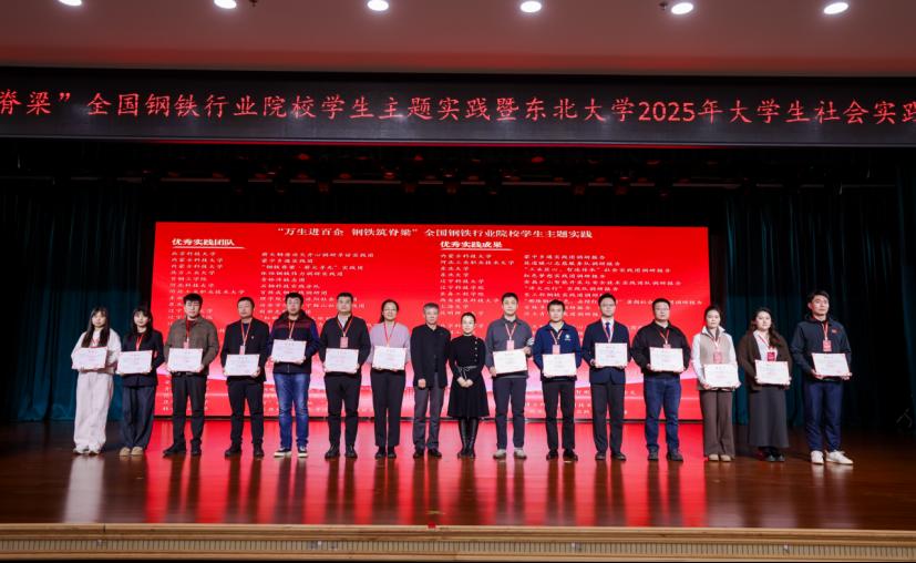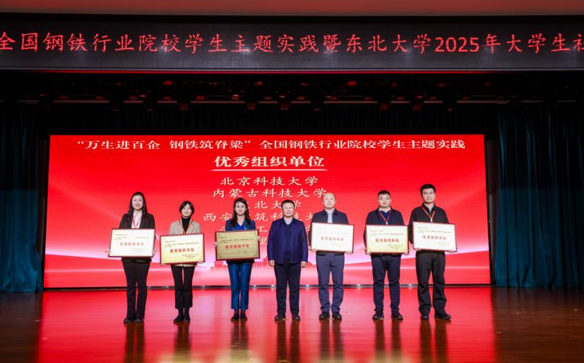 12月3日,2025年新时代高校“钢筋铁骨”育人共同体“万生进百企、钢铁筑脊梁”全国钢铁行业院校学生主题实践总结表彰大会在东北大学举行。我校向胜利八十年致敬“铁炉寻迹”调研团、“钢火淬初心、绿韵启新程”实践队获评优秀团队,“智研钢企”淬智砺行团学术论文、博士科技服务团技术方案获评优秀成果,我校获评优秀组织单位。