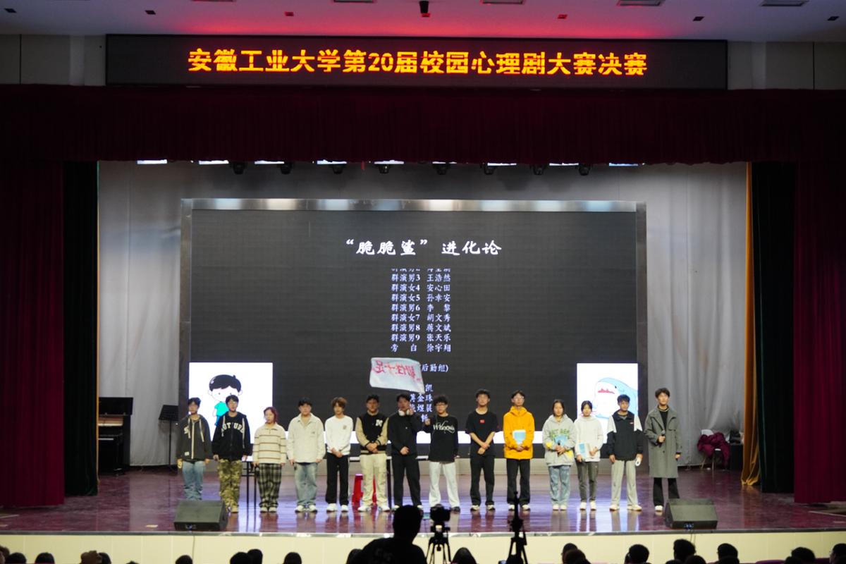 12月10日晚,我校第20届校园心理剧大赛(决赛)精彩上演。安徽师范大学、皖江工学院、马鞍山职业技术学院心理中心主任,以及我校党办校办、学生工作部、安全保卫部、发展规划处等单位负责人担任评委。500余名师生共同观看比赛。