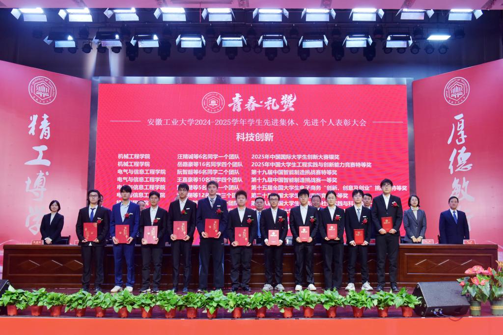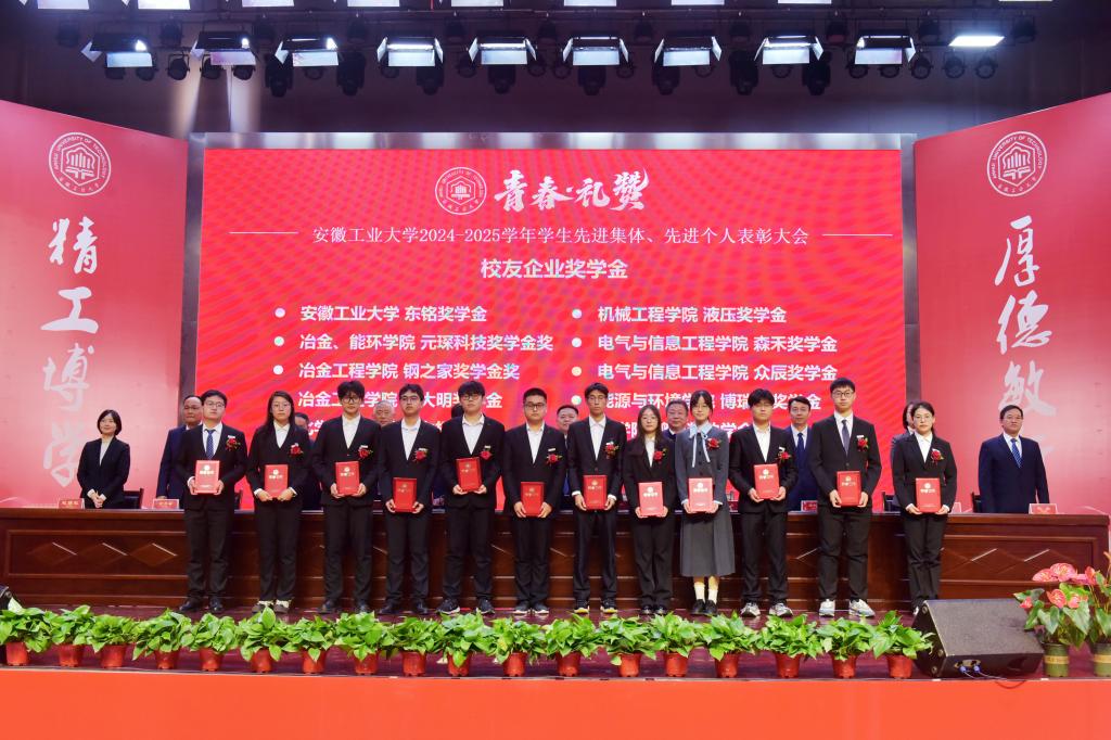 校党委副书记、校长曾杰宣读了2024-2025学年学生先进集体、先进个人的表彰决定。校领导现场为获得校第十二届“十佳班级”、2025年度“安徽省新时代青年先锋”、2024年度“安徽省研究生创新创业之星”、2025年度宝钢优秀学生奖、国家奖学金、国家励志奖学金、校“三好学生标兵”、校友企业奖学金等博学笃行类奖项,以及在文体艺术、科技创新、自立自强等方面取得突出成绩的先进集体和个人代表颁发了奖牌和证书。2024-2025学年,全校学生共有792个先进集体受到表彰,6135人次获各类奖学金,4002名先进个人获各类荣誉称号,在科创竞赛中斩获国际奖17项、国家级奖444项、省级奖1096项,其中,国家级A类赛事一等奖以上21项。大会特别表彰了2025年度校十佳“就业创业领航导师”,感谢他们为学生成长成才、职业启航提供指导和帮助。