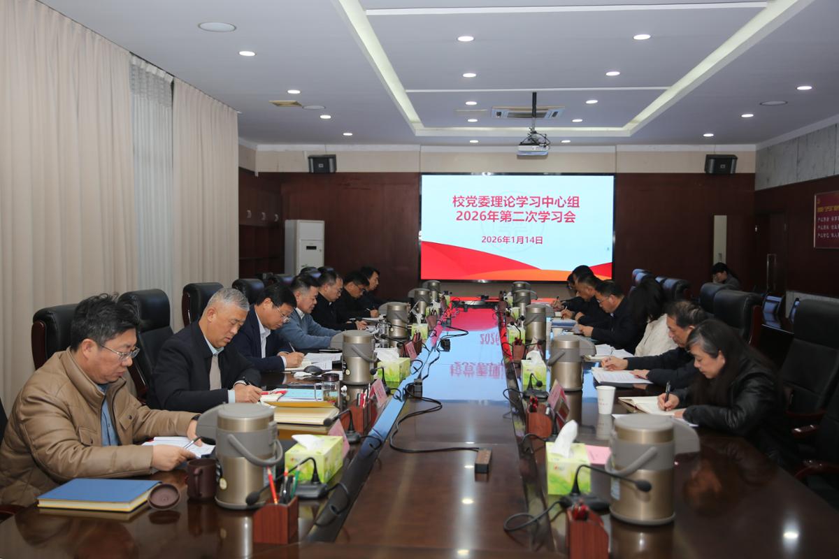 1月14日下午,校党委理论学习中心组召开2026年第二次学习会。校领导,校党委常委,纪委办公室、巡察办公室、学生工作部、研究生工作部主要负责人参加。校党委书记陆林主持会议。