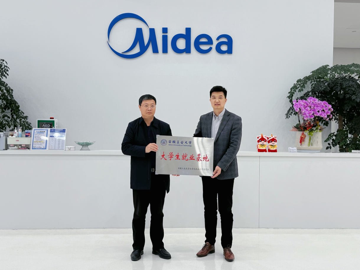 王俊代表学校为美的集团颁授“安徽工业大学大学生就业基地”牌匾,为刘文彪校友颁发就业创业领航导师聘书。(撰稿:江若辰 董春辉 审核:赵传刚 张苒 黄敏)