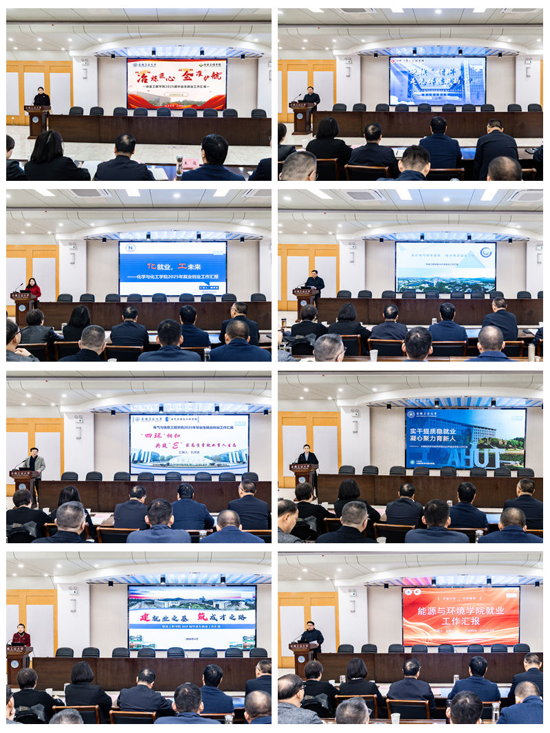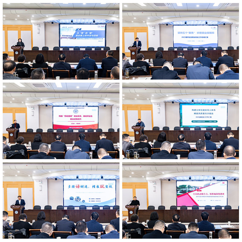 14个二级学院汇报了本单位2025年就业创业工作情况。校就业工作委员会全体成员听取了汇报,进行了现场考评。