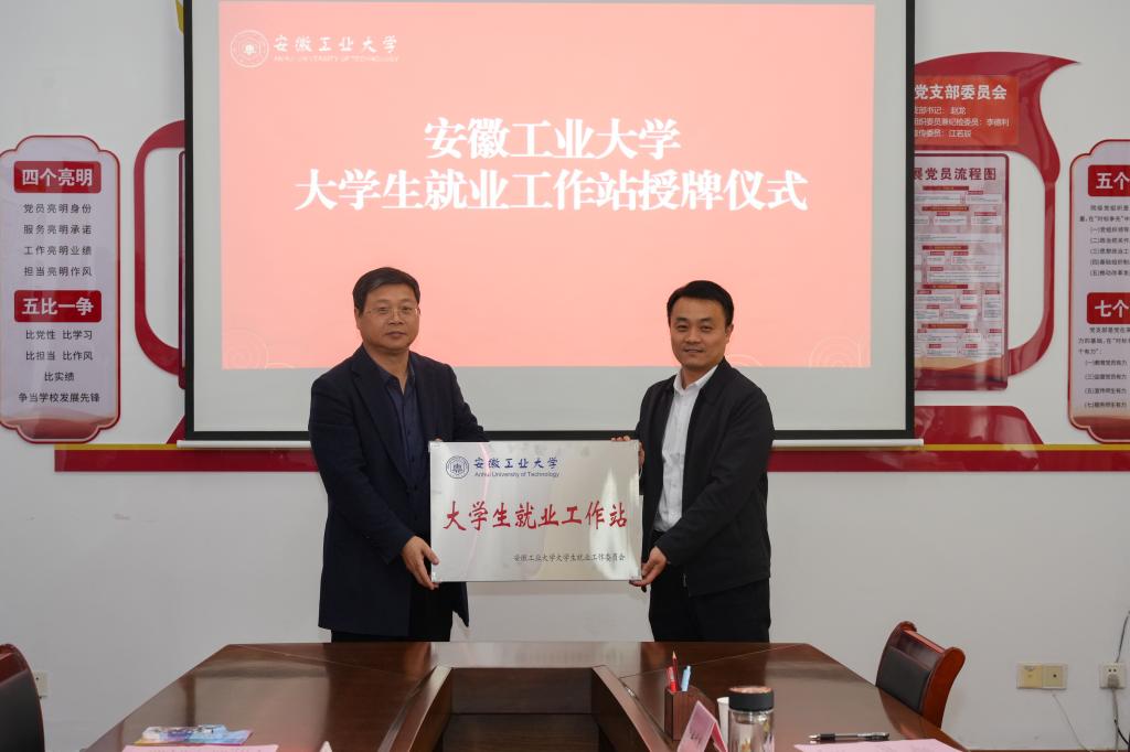 王俊代表学校向合肥市瑶海区进行“安徽工业大学大学生就业工作站”授牌。