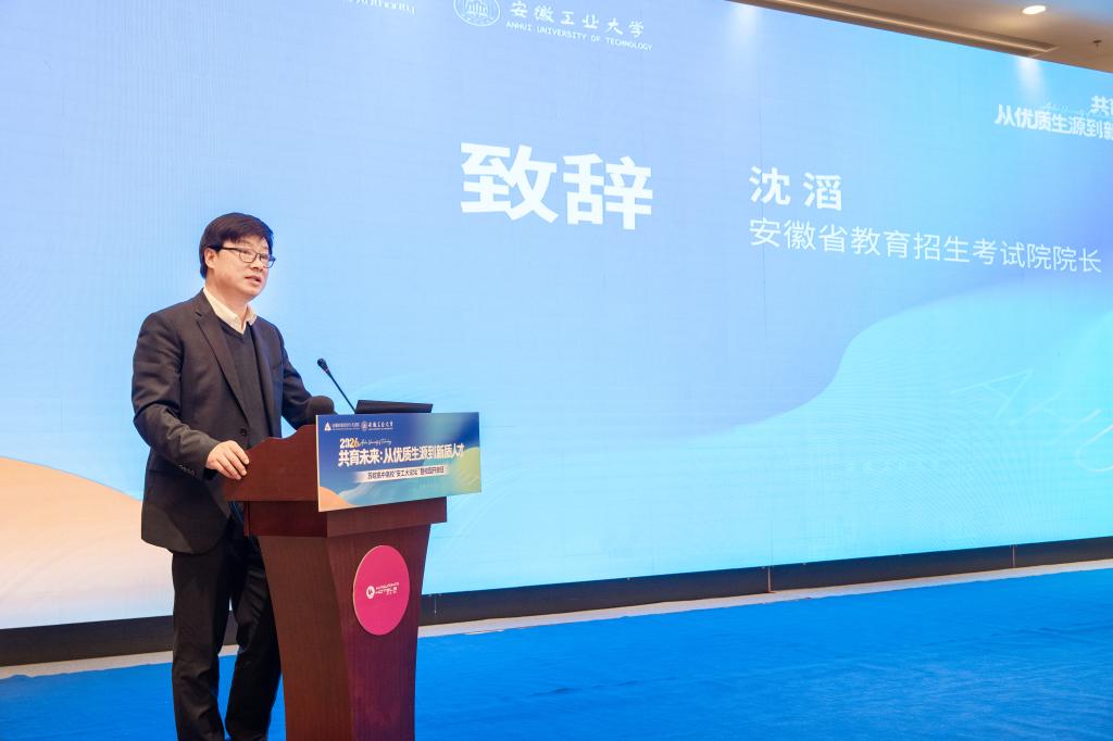 陆现彩代表南京大学对第四届苏皖高中高校“安工大论坛”的举办表示祝贺。他指出,苏皖山水相连、文脉相通,宁马城际开通为两地教育协同搭建了便捷通道,安徽工业大学作为南京大学重要战略合作伙伴,办学成果丰硕。立足“十五五” 开局与教育强国建设新征程,南京大学将聚焦基础前沿、贯通实践创新、深化区域协同,着力培养新质人才。期待与苏皖高中高校携手,深化人才早期培养、资源共享与学段贯通,为长三角一体化与教育强国建设贡献更大力量。