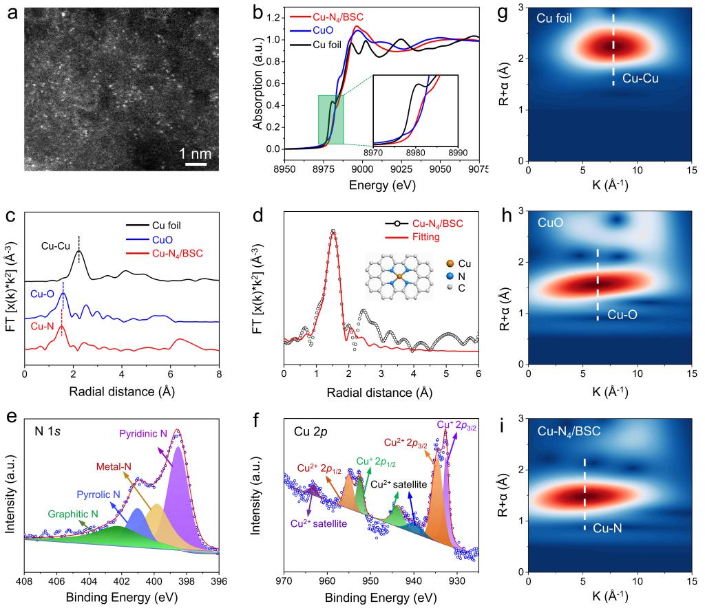 系统的机理研究表明,催化剂(Cu–N4/BSC)通过单电子转移过程活化高价碘试剂,生成自由基物种并加成至烯烃形成新的碳自由基中间体,随后经基团转移或碳正离子途径转化为目标产物。该催化体系在放大条件下仍保持稳定性能:在 5 mmol 规模反应中,双叠氮化和三氟甲基-叠氮化反应分别以92%和85%的收率获得1.12 g和1.15 g目标产物。催化剂经简单离心分离后可循环使用7次,活性保持93%。此外,所得产物中的叠氮基和氰基可进一步转化为胺、三氮唑、羧酸及酰胺等多种官能团。本研究首次实现了同一单原子催化剂催化烯烃的五种双官能化反应,为高效、可持续的含氮化合物合成开辟了新的路径。